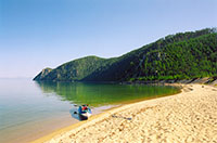 Утром 17 июля, получив две упаковки с байдаркой из багажного вагона, удачно ловим такси, и через пять минут — вот он, заветный байкальский берег. Выгружаемся немного севернее яхт–клуба, и я первым делом иду оформлять бумаги на проход по Фролихинскому заказнику.